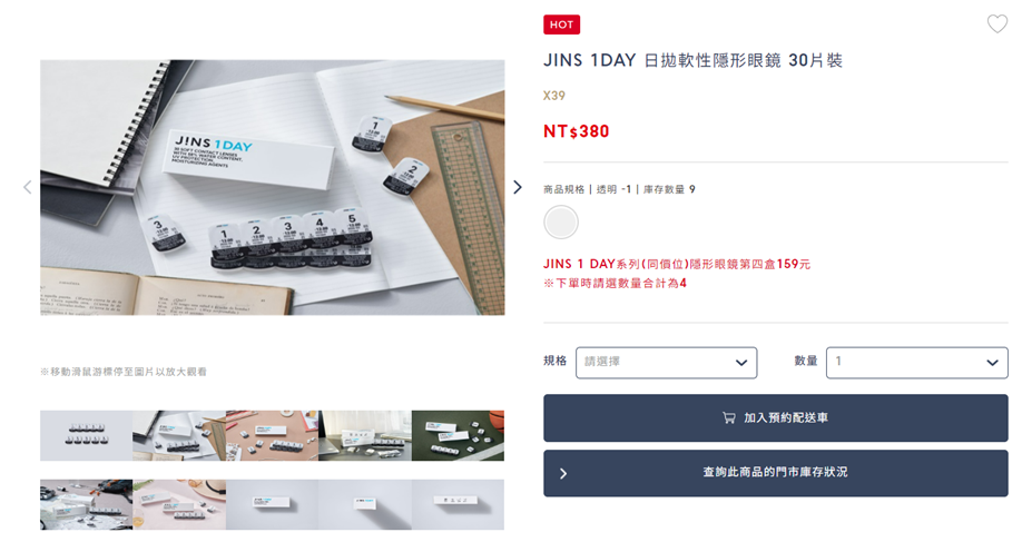 - 從首頁分類點選進入隱形眼鏡產品頁面,選取商品與數量後點選加入預約配送車